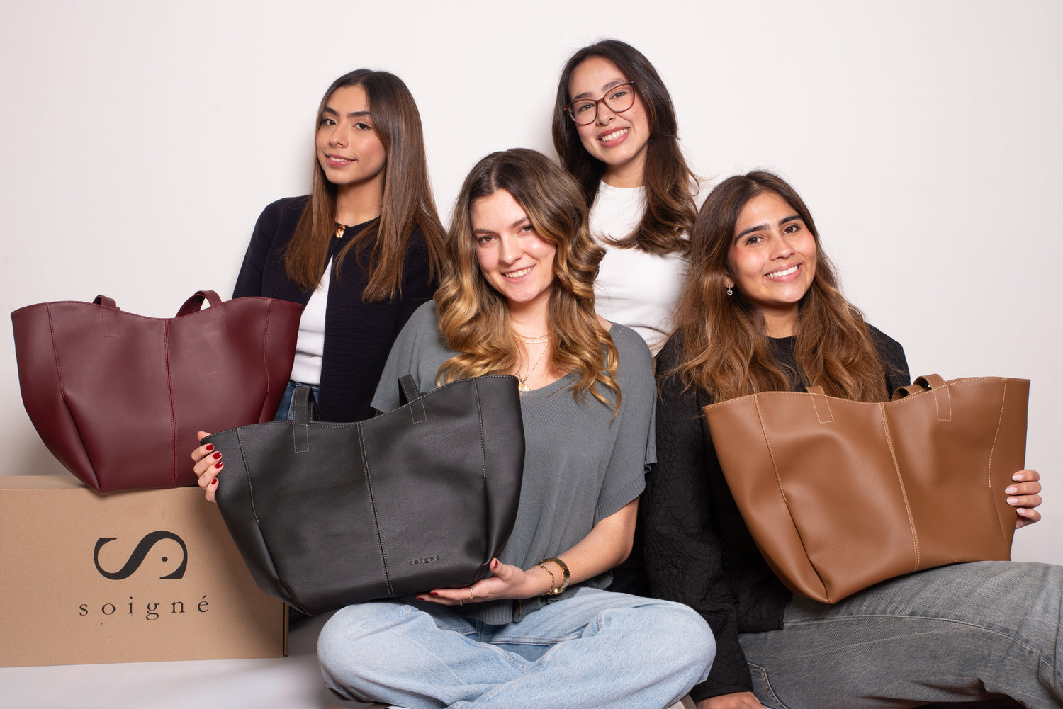 El equipo de Soigné está compuesto por un grupo apasionado y comprometido de cuatro mujeres que trabaja día a día para ofrecer bolsos de calidad, funcionales y sostenibles. Cada una aporta su creatividad, dedicación y amor por la moda consciente, buscando siempre crear productos que no solo embellezcan, sino que también cuiden el planeta.